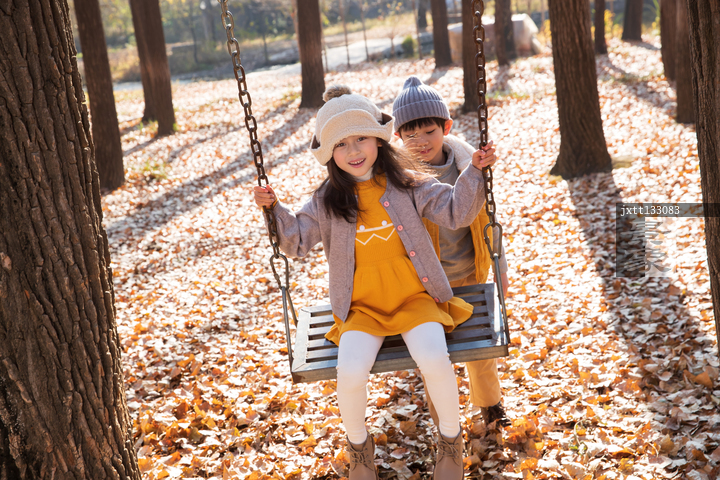 图片标题: 快乐儿童在户外荡秋千