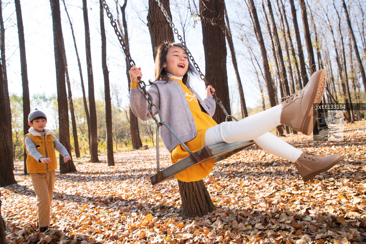 图片标题: 快乐儿童在户外荡秋千