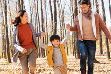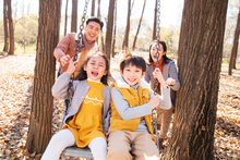 图片标题: 快乐儿童坐在秋千上吹泡泡