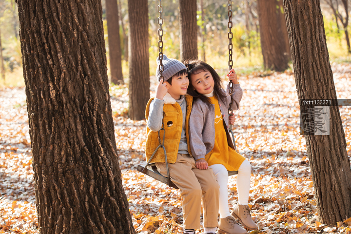 图片标题: 快乐儿童在户外荡秋千