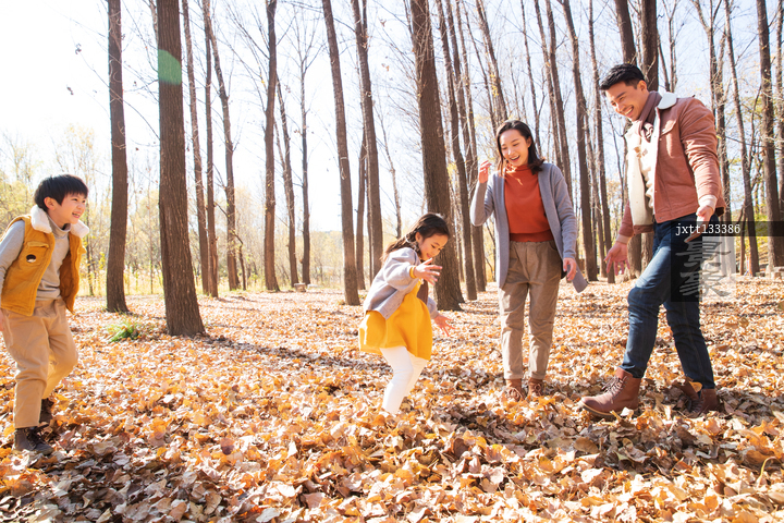 图片标题:     快乐家庭在树林里玩耍