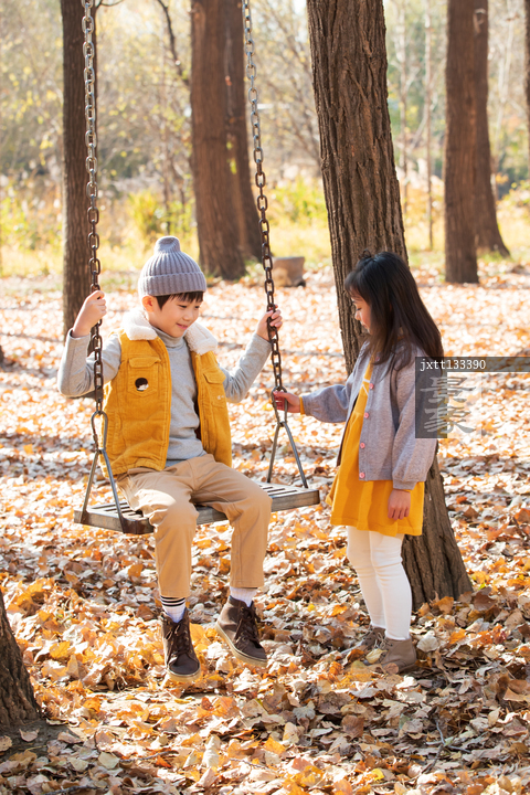 图片标题: 快乐儿童在户外荡秋千