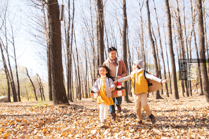 图片标题: 年轻父亲带着孩子们玩飞机游戏