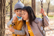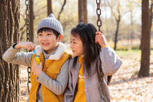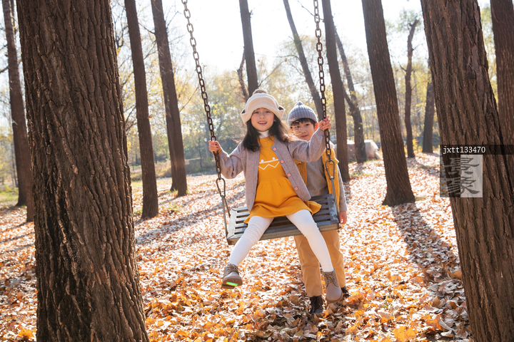 图片标题: 快乐儿童在户外荡秋千