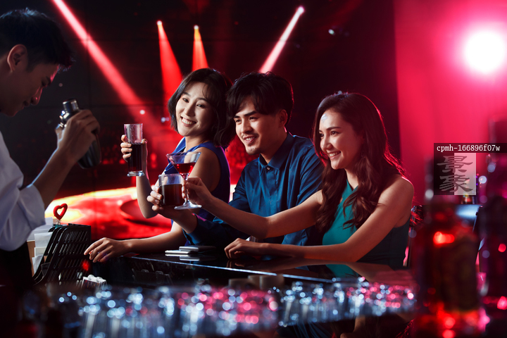图片标题: 快乐的青年人在酒吧喝酒