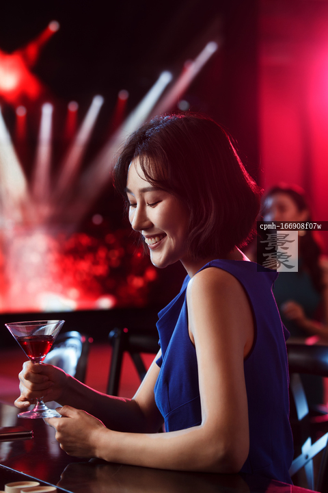 图片标题: 青年女人在酒吧喝酒