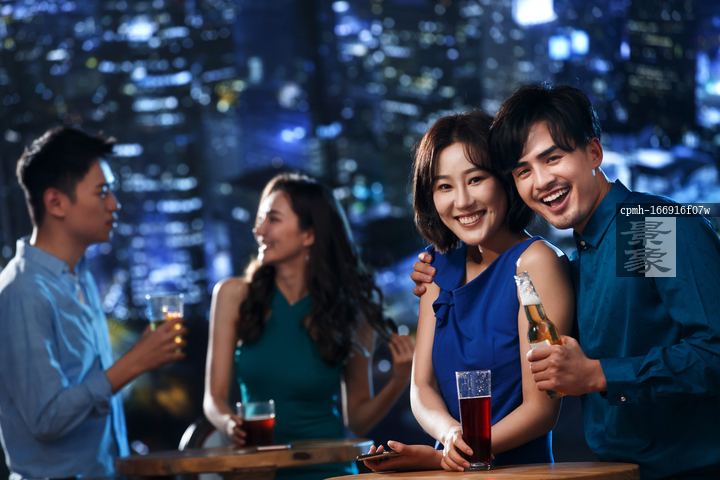 图片标题: 快乐的青年人在酒吧喝酒