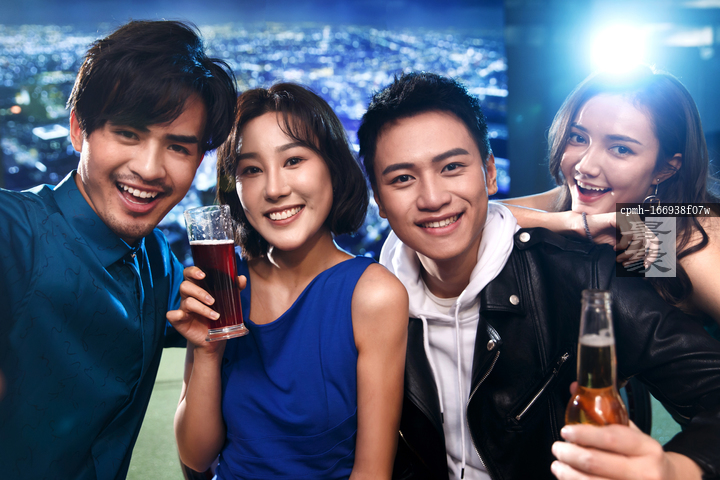 图片标题: 快乐的青年人在酒吧喝酒