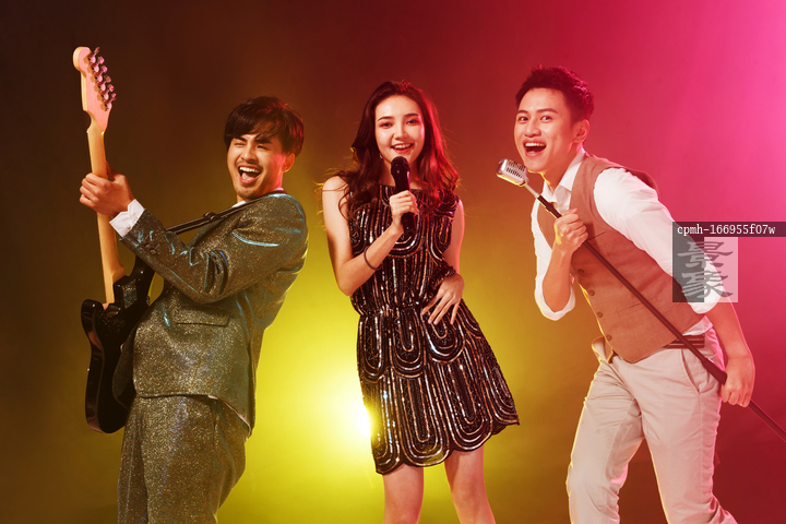 图片标题: 快乐的青年人唱歌跳舞