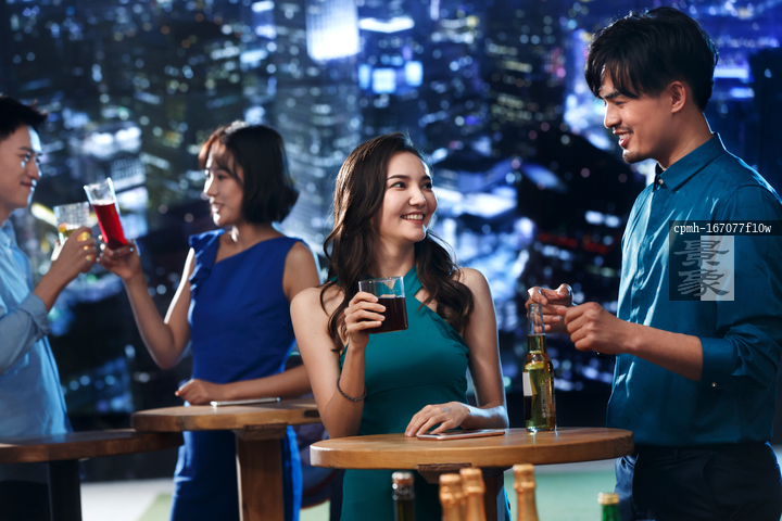 图片标题: 快乐的青年人在酒吧喝酒
