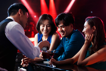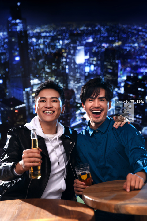 图片标题: 快乐的青年人在酒吧喝酒