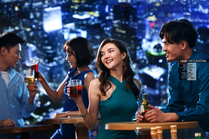 图片标题: 快乐的青年人在酒吧喝酒