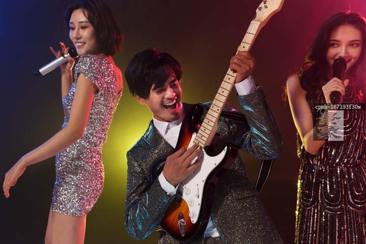 图片标题: 快乐的青年人唱歌跳舞