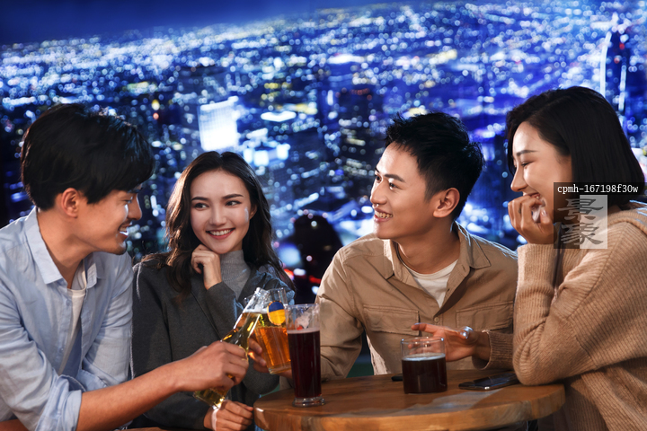 图片标题: 快乐的青年人在酒吧喝酒