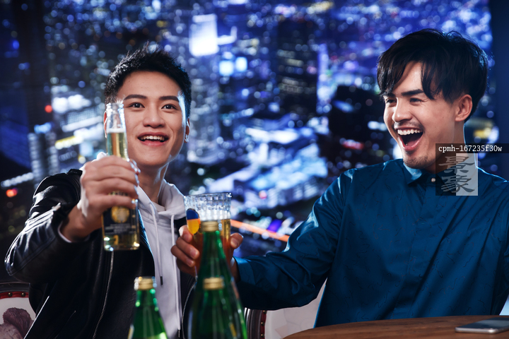 图片标题: 快乐的青年人在酒吧喝酒