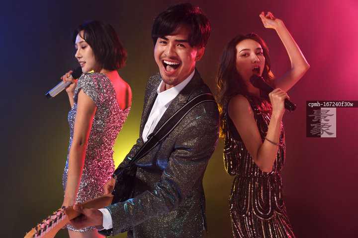图片标题: 快乐的青年人唱歌跳舞