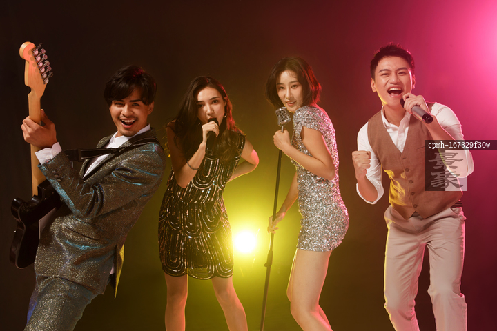 图片标题: 快乐的青年人唱歌跳舞