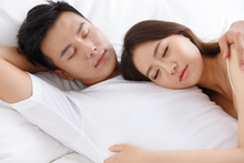 图片标题: 幸福的一家三口躺在户外的床上睡觉