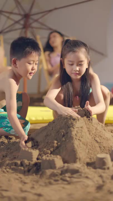 视频标题: 快乐的四口之家在沙滩上玩耍
