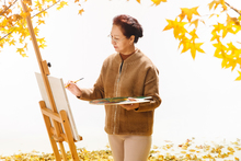 图片标题: 老年夫妇坐着庭院里