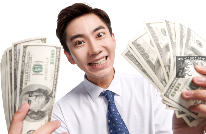 图片标题: 商务青年男人拿着美元