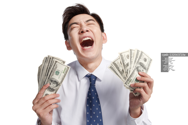 图片标题: 商务青年男人拿着美元