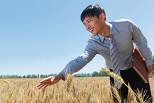 图片标题: 夕阳下农田里的农民