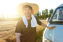 图片标题: 夕阳下农田里的农民