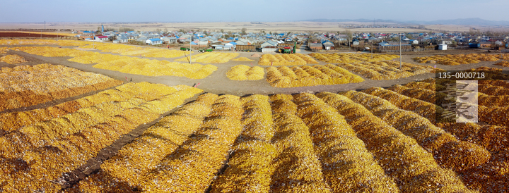 图片标题: 航拍丰收玉米铺满大地村庄