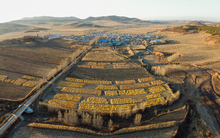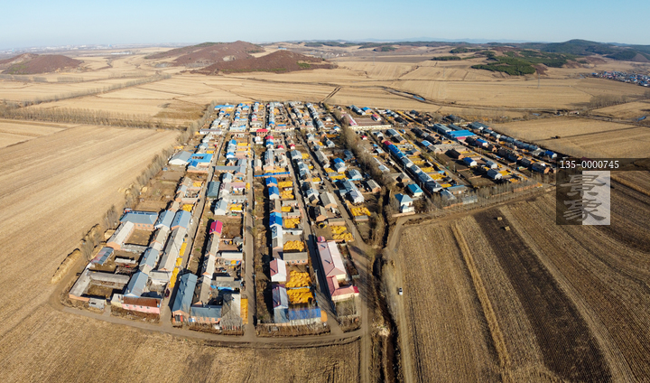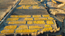 图片标题: 航拍丰收玉米铺满大地村庄