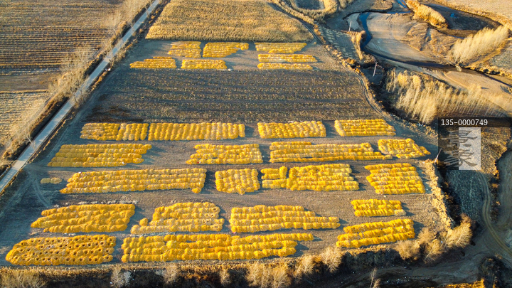 图片标题:     航拍丰收玉米铺满大地村庄