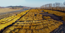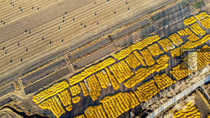 图片标题:     航拍丰收玉米铺满大地村庄