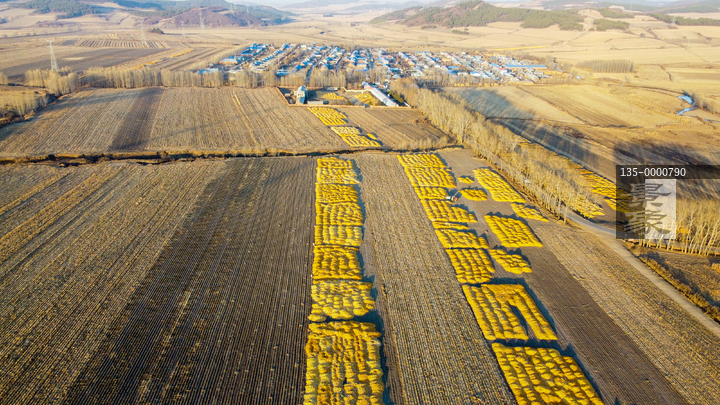 图片标题: 航拍丰收玉米铺满大地村庄