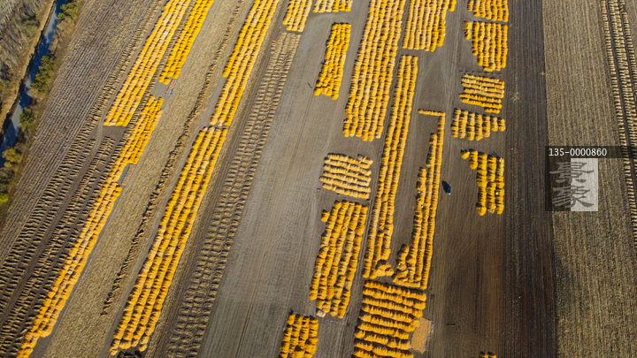 图片标题: 航拍丰收玉米铺满大地村庄