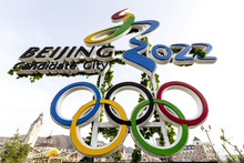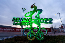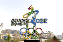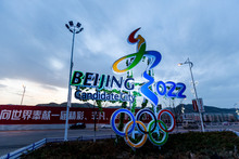 图片标题: 2016年5月,河北省张家口市崇礼区,喜迎2022年冬季奥运会的宣传牌和标语