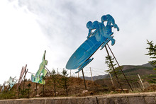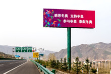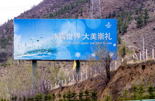 图片标题: 2016年5月,河北省张家口市崇礼区,喜迎2022年冬季奥运会的宣传牌和标语