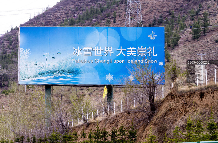 图片标题: 2016年5月,河北省张家口市崇礼区,喜迎2022年冬季奥运会的宣传牌和标语