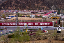 图片标题: 2016年5月,河北省张家口市崇礼区,喜迎2022年冬季奥运会的宣传牌和标语