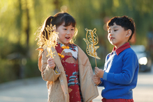 图片标题: 幸福的祖孙三人逛庙会