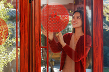 图片标题: 春节东方家庭在中式庭院内聚餐