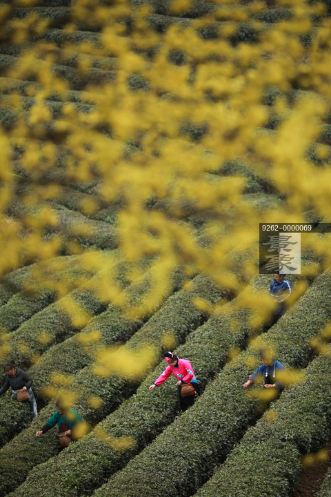 图片标题: 春天茶园采茶叶