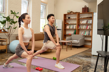 图片标题: 青年夫妇在家锻炼身体