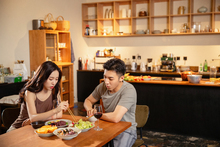 图片标题: 青年情侣趴在床上聊天