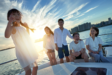 图片标题: 一家三口在海边度假