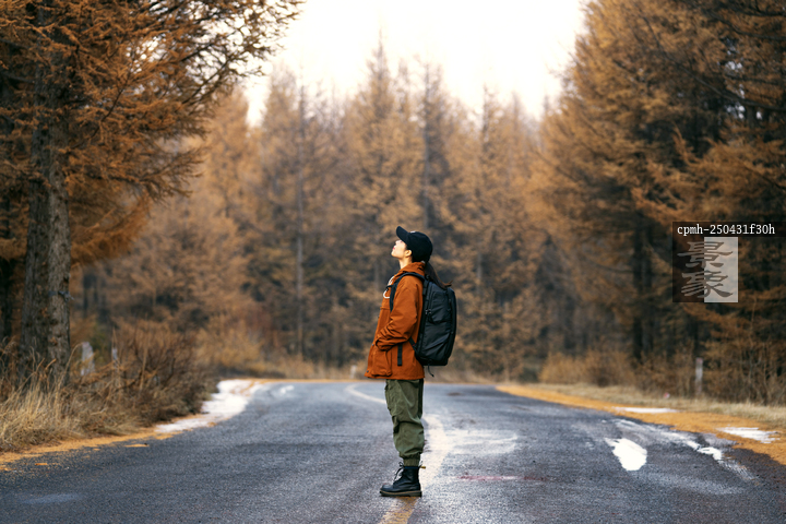 图片标题: 年轻女子徒步旅行