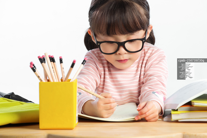 图片标题: 可爱的小女孩写作业