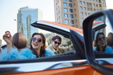 图片标题: 快乐的青年情侣驾驶跑车出行