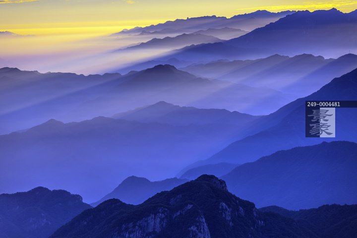 图片标题: 披着霞光的河南西部伏牛山
