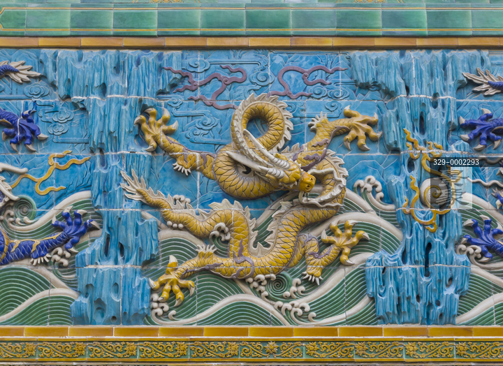 图片标题: 北京北海公园九龙壁黄龙(正龙)局部