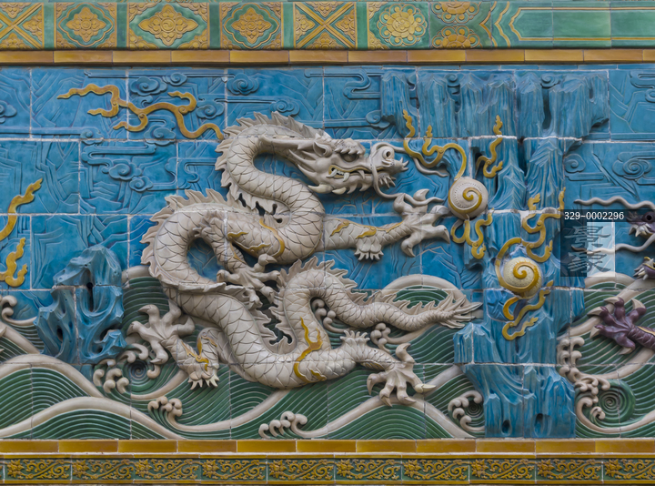 图片标题: 北京北海公园九龙壁白龙(升龙)局部